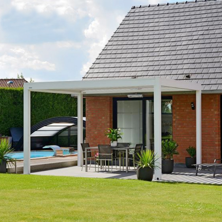 Our most popular aluminum louver pergola system model is our iDP700 Pergola Kits series. There are 4 sizes, including 3x3x2.5m, 3x4x2.5m, 4x4x2.5m, and even 6x4x2.5m. In fact, we can manufacture products of any size! We customize the size for you without any additional cost. Just call us and we will create drawings for you to view and edit.