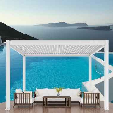 White and gray are the standard colors of our outdoor pergola products. But we can also customize other colors according to customer needs. "Outdoor automatic waterproof louvered patio cover motorized balcony garden pergola roof bioclimatique" can be customized with the following colors:Yellow Grey,Quartz Grey,Signal White,Pure White,Signal White,White Aluminum,Anthracite Brey,Basalt Grey and Grey Beige.