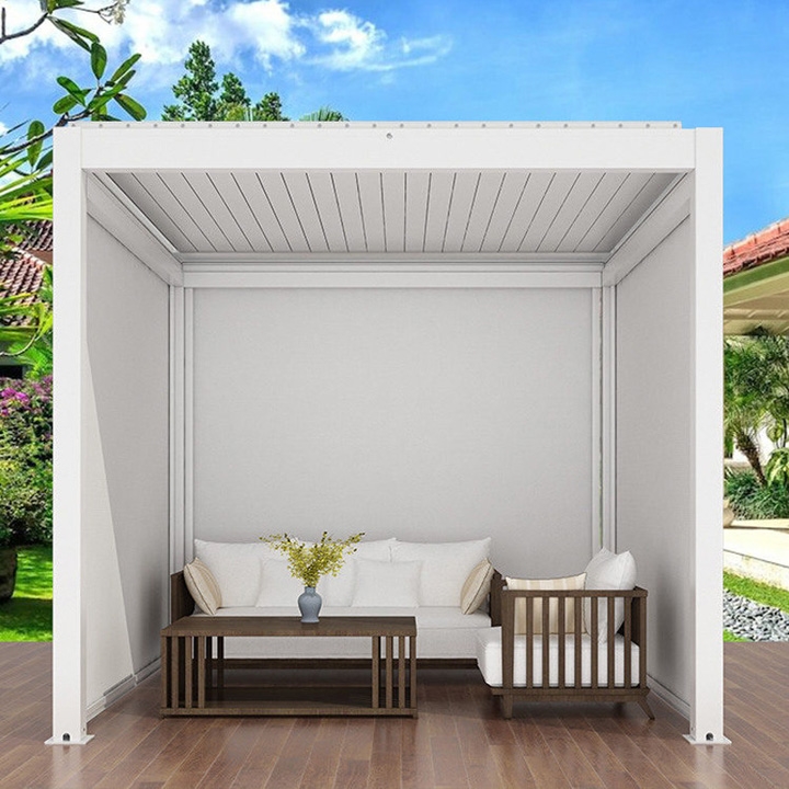 Our most popular aluminum louver pergola system model is our iDP700 Pergola Kits series. There are 4 sizes, including 3x3x2.5m, 3x4x2.5m, 4x4x2.5m, and even 6x4x2.5m. In fact, we can manufacture products of any size! We customize the size for you without any additional cost. Just call us and we will create drawings for you to view and edit.